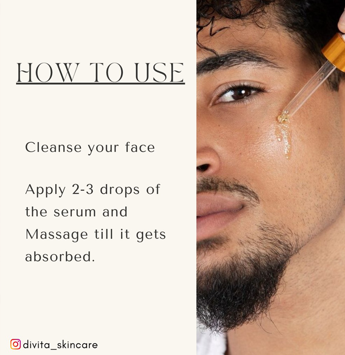 - Apply 3-4 drops of the serum and massage till it gets absorbed.