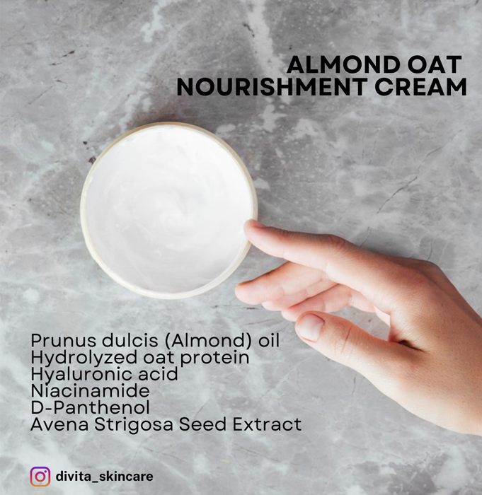 Niacinamide , Prunus Dulcis (Almond) Oil , Hydrolyzed Oat Protein , Hyaluronic Acid , D-Panthenol , Avena Strigosa Seed Extract
